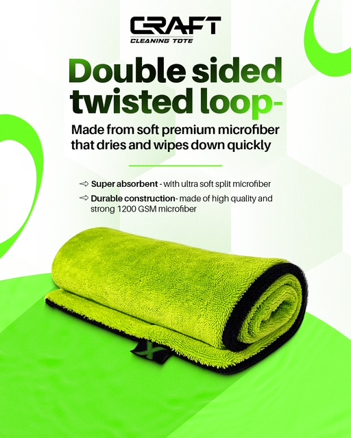 Experience next-level drying power with our Double-Sided Twisted Loop Microfiber Towel, engineered for serious performance and flawless results. The ultra-plush 1200 GSM microfiber absorbs water quickly while remaining gentle on all surfaces. Perfect for boats, RVs, glass, and delicate finishes, this towel delivers streak-free, scratch-free results every time.