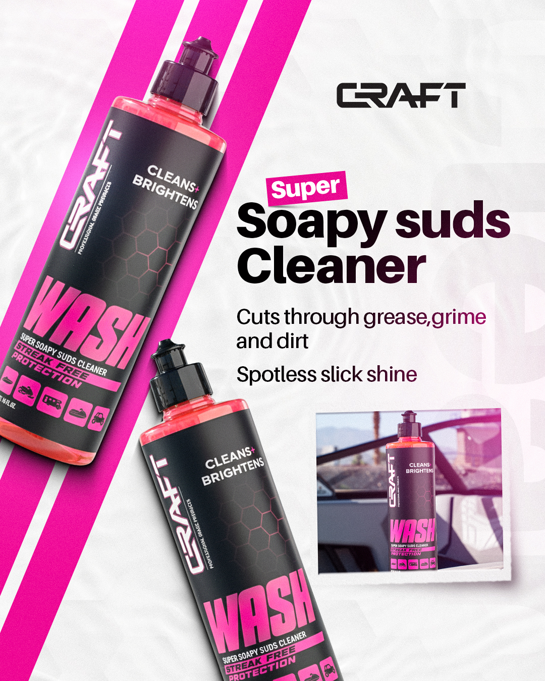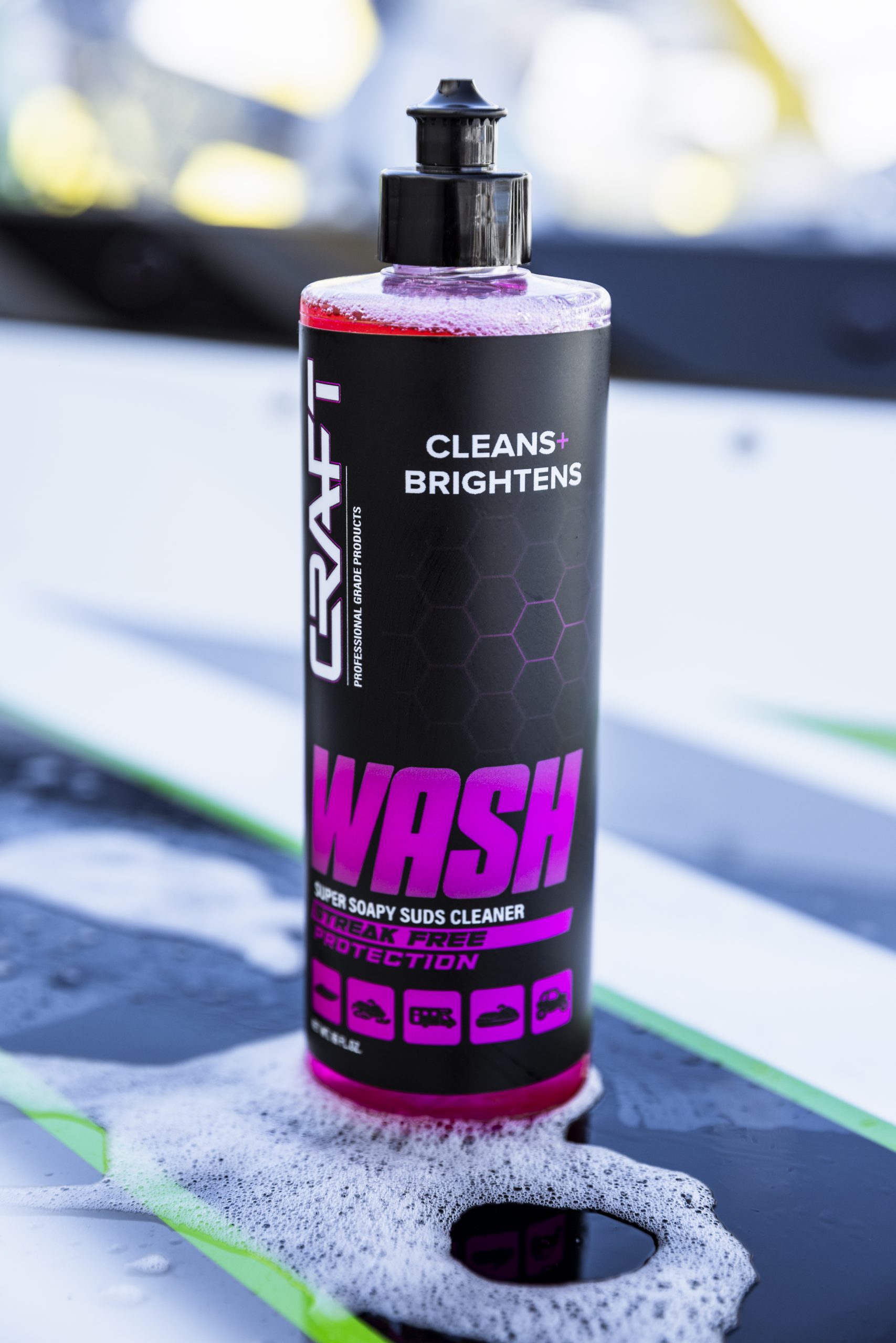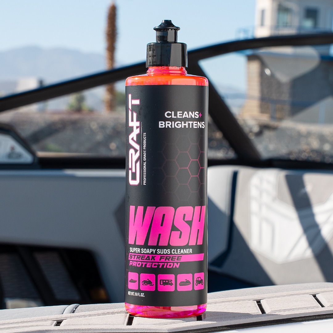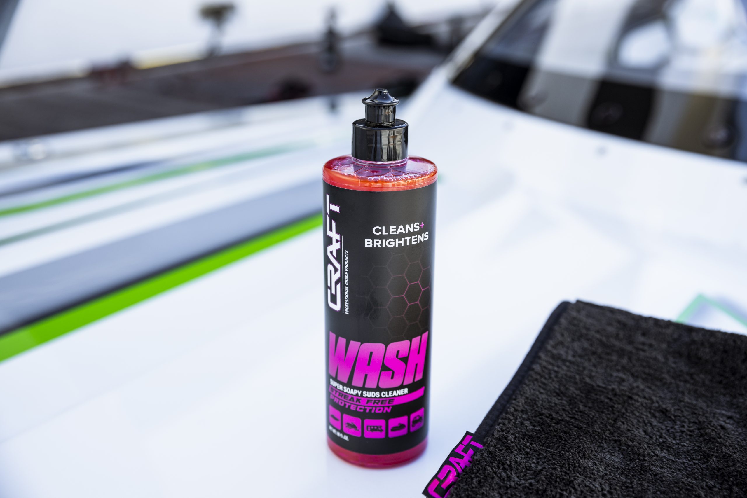 Experience a professional grade clean with CRAFT Wash Super Soapy Suds Cleaner. It foams up fast to cut through the grease, grime and dirt on your boat. Infused with carnauba and polymer waxes, CRAFT Wash Cleaner leaves your surface glossy and protected. CRAFTED in the US and biodegradable, non-toxic, and ph neutral, so it is safe on all finishes. No streaks, no stripping—just a spotless slick shine every time you wash your boat.